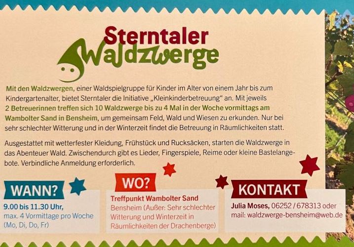 Unsere Waldspielgruppe „Sterntaler Waldzwerge“, für Kinder im Alter von 1 - 3 Jahren, hat derzeit wieder Plätze frei🌳