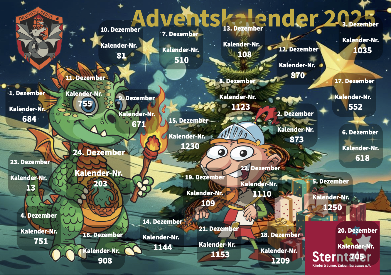 Wir veröffentlichen hier täglich für Euch die notariell gezogene Losnummer des Adventskalenders!