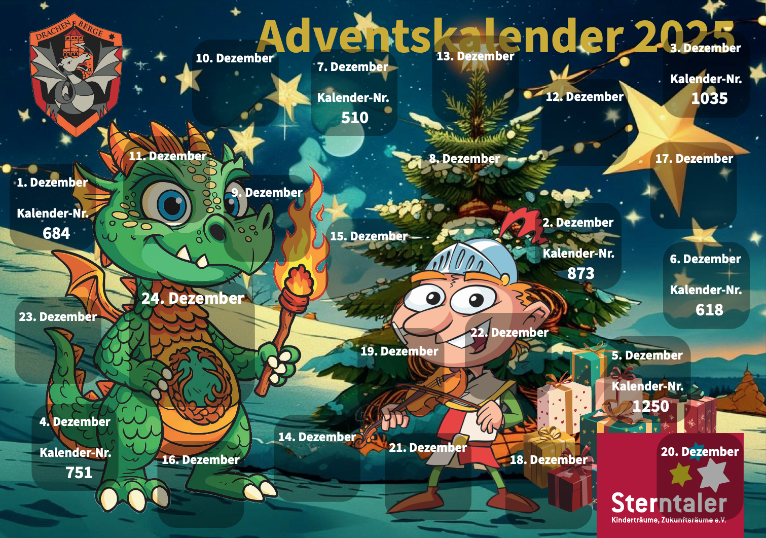 Wir veröffentlichen hier täglich für Euch die notariell gezogene Losnummer des Adventskalenders!